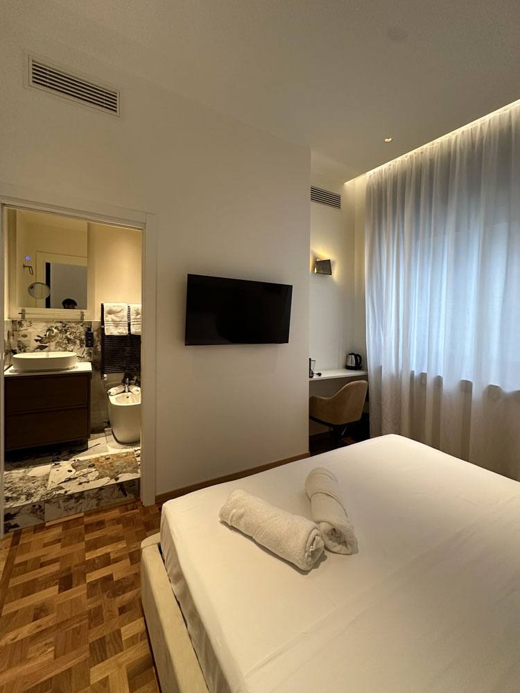 Pensata per chi viaggia da solo o in coppia, questa camera offre tutto ciò che serve per un soggiorno rilassante: comfort moderni, materiali di qualità e un’atmosfera serena che invita al riposo dopo una giornata nel dinamismo milanese.